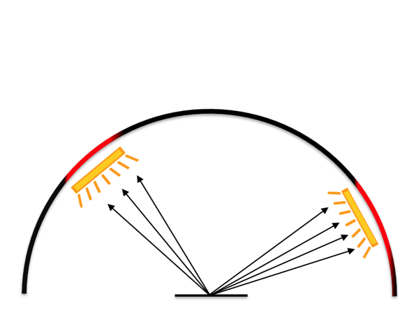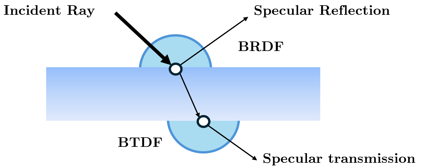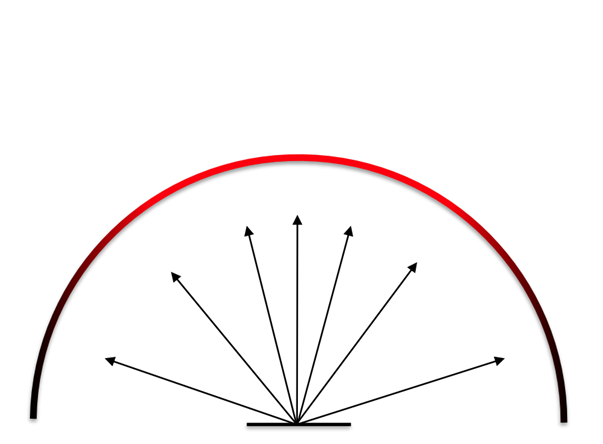 - Lambert’s Cosine Law (Incident angle $\theta$ dictates surface illumination)