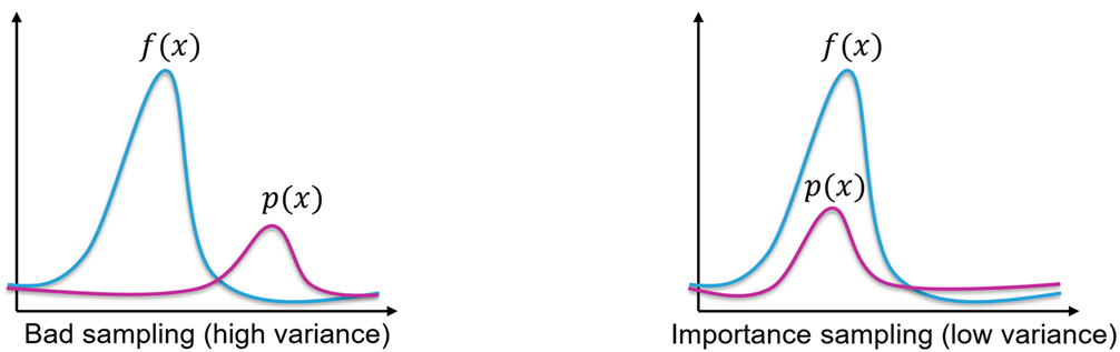 $$ p^*(\boldsymbol{\omega}_i \mid \mathbf{x}, \boldsymbol{\omega}_o) = \frac{f_s(\mathbf{x}, \boldsymbol{\omega}_o, \boldsymbol{\omega}_i) \, L_i(\mathbf{x}, \boldsymbol{\omega}_i) \, \cos\theta_i}{L_r(\mathbf{x}, \boldsymbol{\omega}_o)} $$where the numerator is the integrand and the denominator is the reflected radiance serving as the normalization factor.
