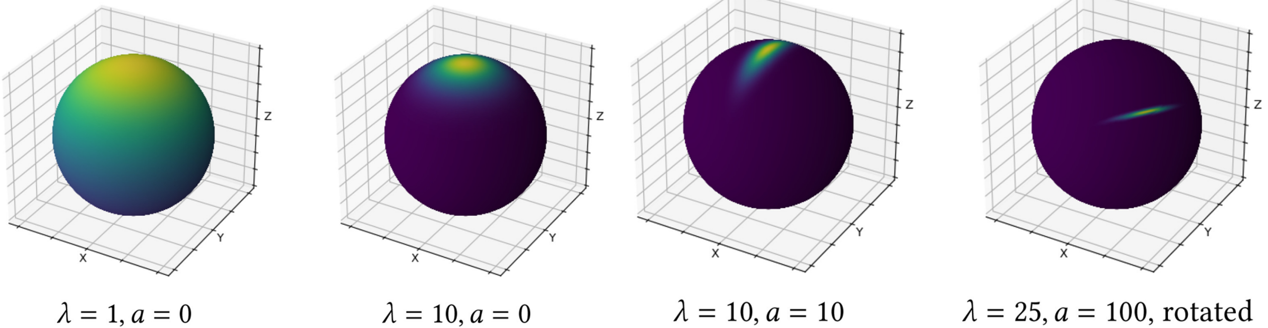- Direction $\boldsymbol{\omega}_o$: Spherical harmonics with degree 4
