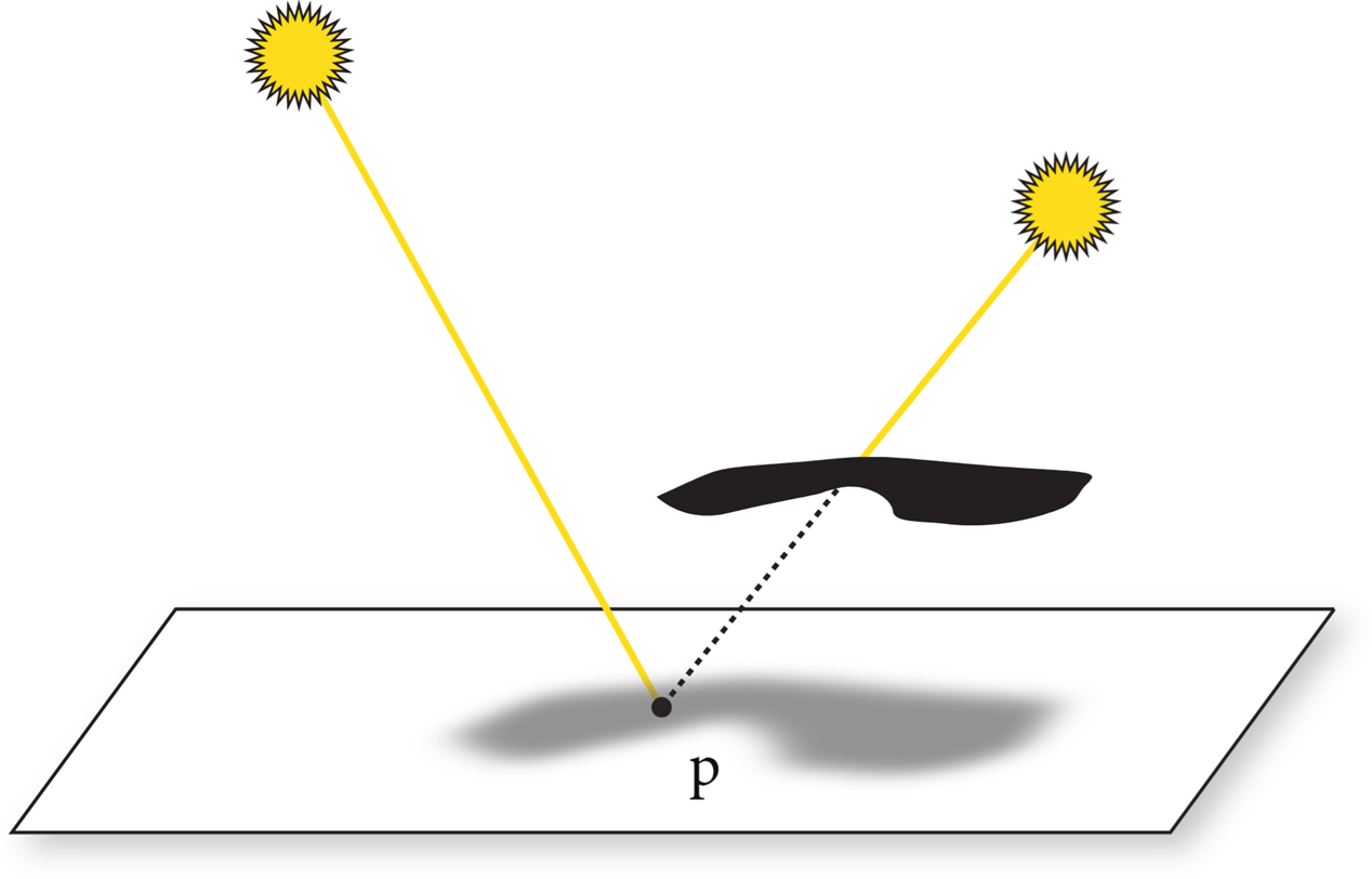 Visibility: In order to know whether a given light deposits energy at a point on a surface, we must know whether there is an uninterrupted path from the point to the light source. Fortunately, this question is easy to answer in a ray tracer, since we can just construct the ray from the surface to the light, find the closest ray–object intersection, and compare the intersection distance to the light distance.