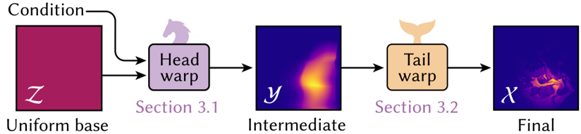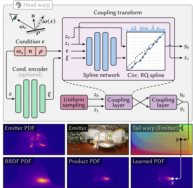 - Tail warp requires training per material model for new environment map, with duration depending on conditioning dimension and target-distribution complexity